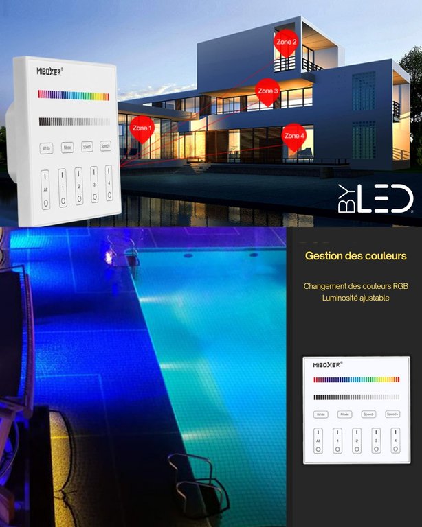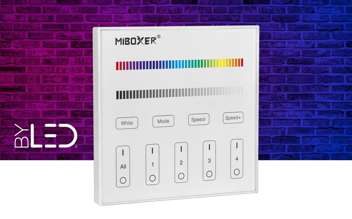 Compatible avec des rubans ou des spots LED RGB+W 12V ou 24V.