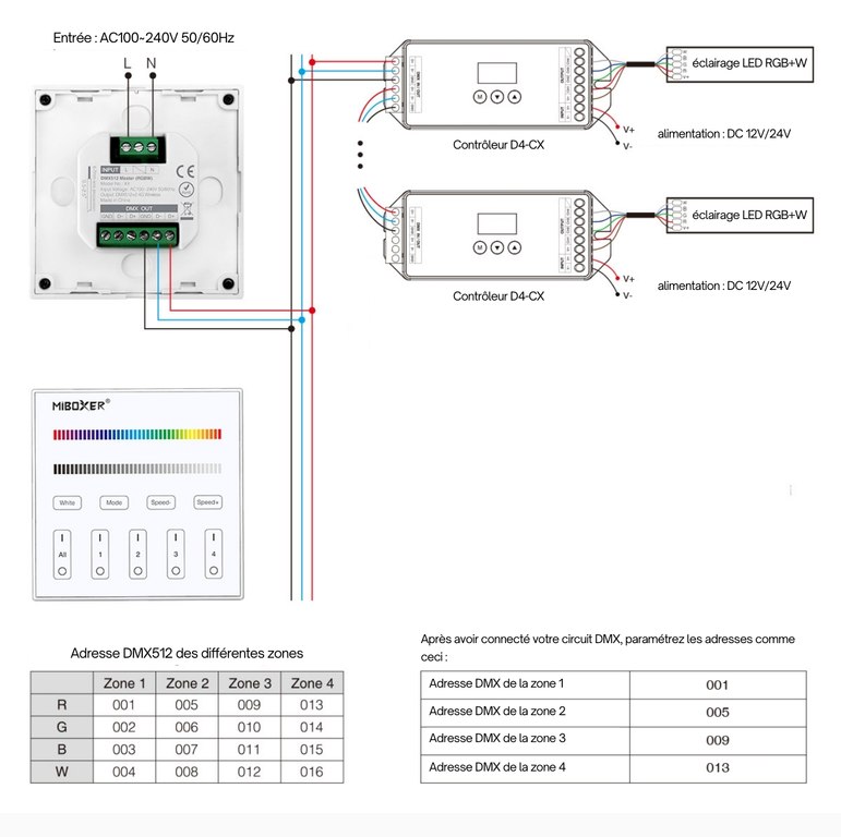 Pour leurs bons fonctionnements, vos rubans LED doivent être reliés à des contrôleurs dimmer DMX512 - MiBoxer D4-CX.