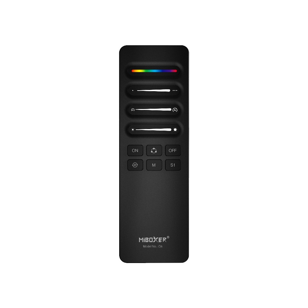 La télécommande MiBoxer C6 est spécialement conçue pour piloter vos rubans LED digitaux SPI mono, RGB ou RGBW. Elle peut contrôler simultanément plusieurs contrôleurs MiBoxer digitaux (SPIR3 ou SPIR3-M).