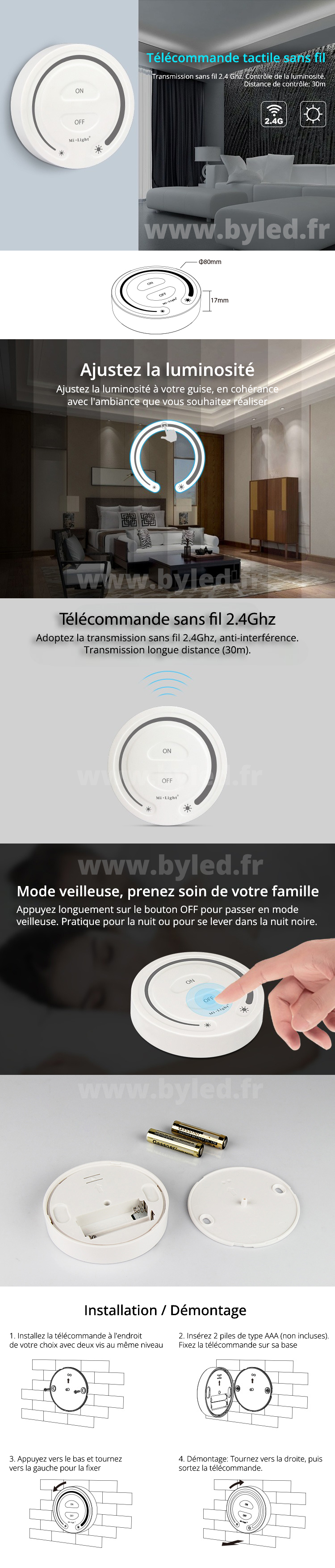Couleur : Blanc (existe aussi en noir) - Fonctionne avec 2 piles AAA (non fournies, disponibles en cliquant ici) - 80 x 17mm - MiBoxer FUT087.