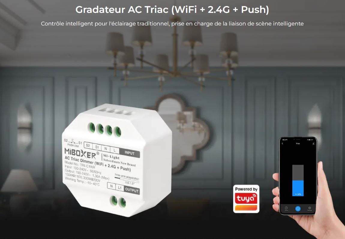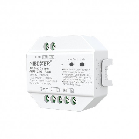 Ce variateur connecté MiBoxer est un dispositif qui vous offre la possibilité de gérer vos éclairages 230V de manière intelligente et flexible. Sa connectivité Wi-Fi et les applications smartphone gratuites telles que "Tuya smart" ou "Smart Life" vous permettent de contrôler l'environnement lumineux de votre maison depuis n'importe quel endroit.