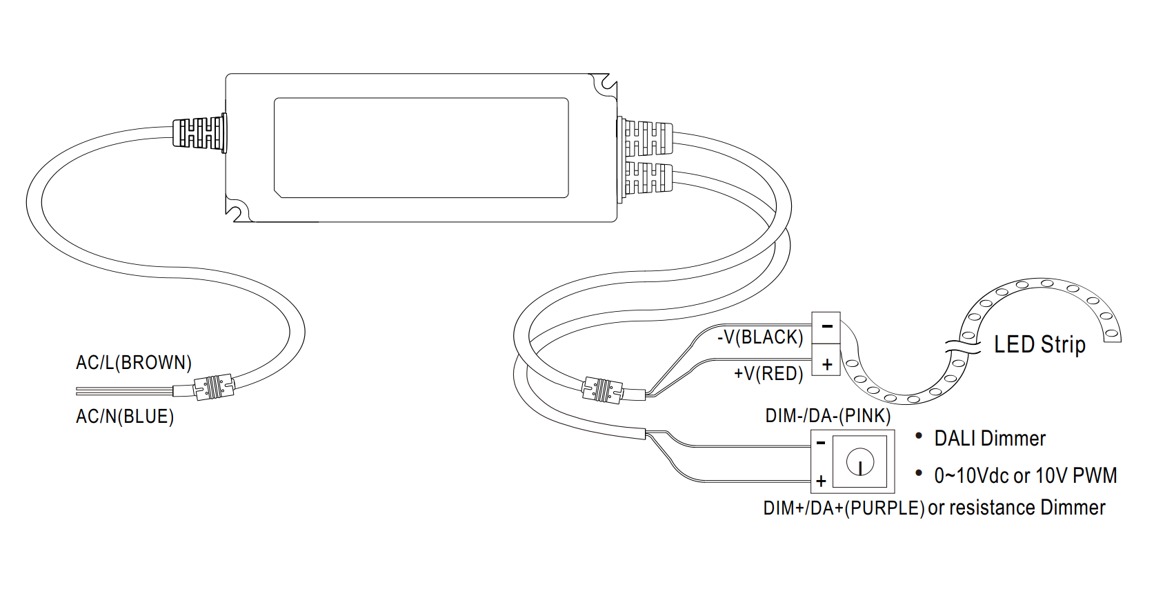 Pour utiliser le signal DALI, utilisez les bornes DA+ et DA-.