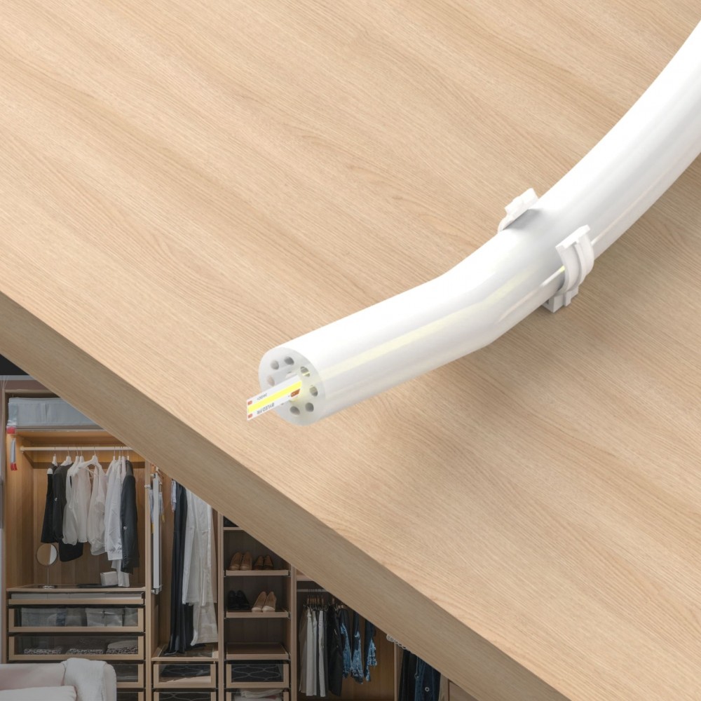 Réalisez vos propres néons flex : d'une souplesse incroyable, insérez votre mini ruban LED IP20 à l'intérieur de ce profilé flexible (5-6 mm de large maximum) et obtenez une diffusion givrée de la lumière sur 180 ou 360°.