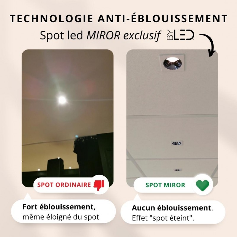 Distinguez votre intérieur avec ces spots LED encastrables à effet miroir et développés avec la technologie anti-éblouissement. Ainsi, ils seront parfaitement adaptés à tout lieu de vie. Vos invités, vos clients, votre public ne seront plus jamais éblouis et pourront profiter d'une expérience chez vous, ou dans votre établissent dans les meilleures conditions (sans gêne visuelle, ni sur les photos ni en regardant la zone haute de votre pièce). Installateur ? Démarquez-vous de la concurrence en proposant un produit original et de qualité.